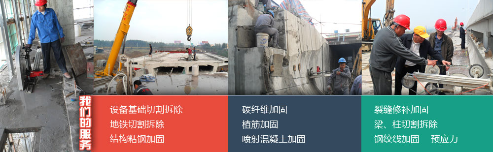 擁有自行研發(fā)生產(chǎn)的專業(yè)性混凝土切割機設備:液壓繩鋸機8臺、液壓墻鋸機4臺、液壓鉆孔機10臺,電動鉆孔機20臺